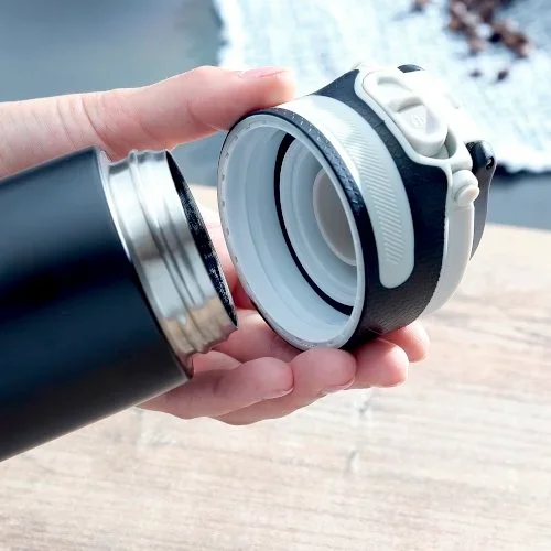 Kubek termiczny Flip o pojemności 600 ml to idealny towarzysz każdej podróży. Dzięki niemu ulubione napoje będą zawsze w zasięgu ręki i zachowają odpowiednią temperaturę. Obudowa tego modelu została wykonana z wysokiej jakości stali nierdzewnej. Jej ścianki są podwójne i gwarantują znakomitą izolację. Ciepłe napoje zachowują swoją temperaturę do 6 godzin, natomiast chłodne – nawet do 18 godzin. Kubek uzupełnia pokrywka z antypoślizgowego tworzywa sztucznego, które jest całkowicie bezpieczne dla zdrowia. Można wygodnie obsługiwać ją jedną ręką. Pokrywkę dodatkowo zabezpieczono przez przypadkowym otwarciem. Model ten wyróżnia się 100% szczelnością.