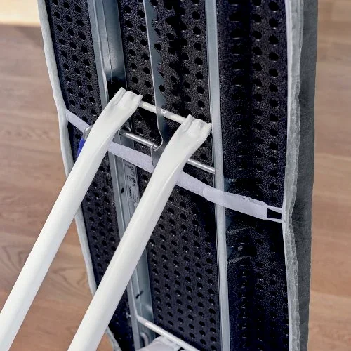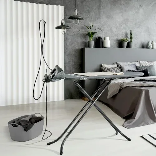 Pokrowiec na deskę do prasowania Thermo Reflect S/M Black marki Leifheit nie tylko przyciąga wzrok, ale także, dzięki materiałowi z certyfikatem Oeko-Tex, pozwala na proste i szybkie prasowanie.