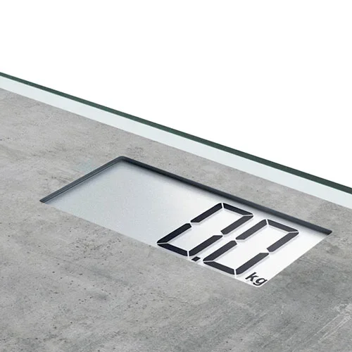 Elektroniczna waga łazienkowa Style Sense Compact 300 Concrete jest atrakcyjnym dodatkiem do każdej łazienki dzięki unikatowej stylistyce przypominającej beton. Ta waga z wysokiej jakości szkła hartowanego oferuje wygodną platformę i nośność do 180 kg. Waga włącza się od razu po wejściu na platformę i na czytelnym wyświetlaczu LCD wskazuje masę ciała z dokładnością do 100 g. Po zakończeniu ważenia waga wyłącza się automatycznie. Dzięki temu jest energooszczędna i zapewnia długi czas użytkowania dołączonych baterii. Przegroda baterii jest mocno przykręcona i dzięki temu bezpieczna dla dzieci.
