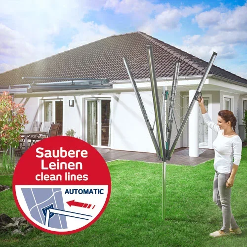 Suszarka jest wyposażona w system łatwego rozkładania Easy-Lift umożliwiający aż o 20% lżejsze otwieranie, automatyczne wciąganie linki napinającej oraz wygodne składanie suszarki bez schylania, dzięki systemowi Easy-Close za pomocą odblokowania na ramieniu. Tak jak we wszystkich suszarkach Linomatic, linki są schowane w ramionach, które chronią je przed zabrudzeniem, co gwarantuje zarówno czyste linki, jak i pranie. Natomiast przy kolejnym rozkładaniu suszarki linki automatycznie się napinają. Brudne linki, które w przypadku tradycyjnych suszarek zostawiają nieładne paski na praniu, należą już do przeszłości.