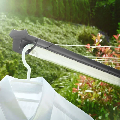 - Suszarka z mechanizmem automatycznego wciągania linek zapewniającym czyste linki i czyste pranie.