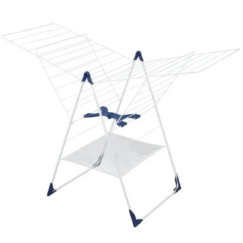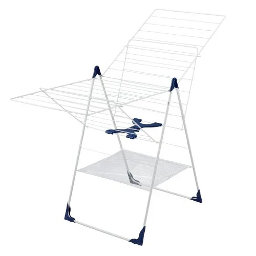 Suszarka Classic 250 Flex marki Leifheit doskonale sprawdza się podczas suszenia różnego rodzaju prania – od drobnej bielizny aż po długie części garderoby, jak spodnie czy sukienki. Model ten został wykonany z wytrzymałego metalu, a drążki dodatkowo wzmocniono tworzywem sztucznym. Dzięki temu suszarka może być wykorzystywana także w ogrodzie lub na balkonie – jest odporna na warunki atmosferyczne i odkształcanie pod wpływem ciepła. Uzupełniają ją plastikowe elementy, które m.in. zabezpieczają nogi suszarki przed zarysowaniem. Konstrukcja jest stabilna i stoi prosto nawet podczas wiatru.