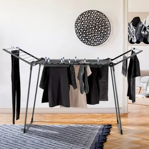 Suszarka ta jest wyjątkowo wąska i po złożeniu można ją łatwo schować za szafą lub w kącie.